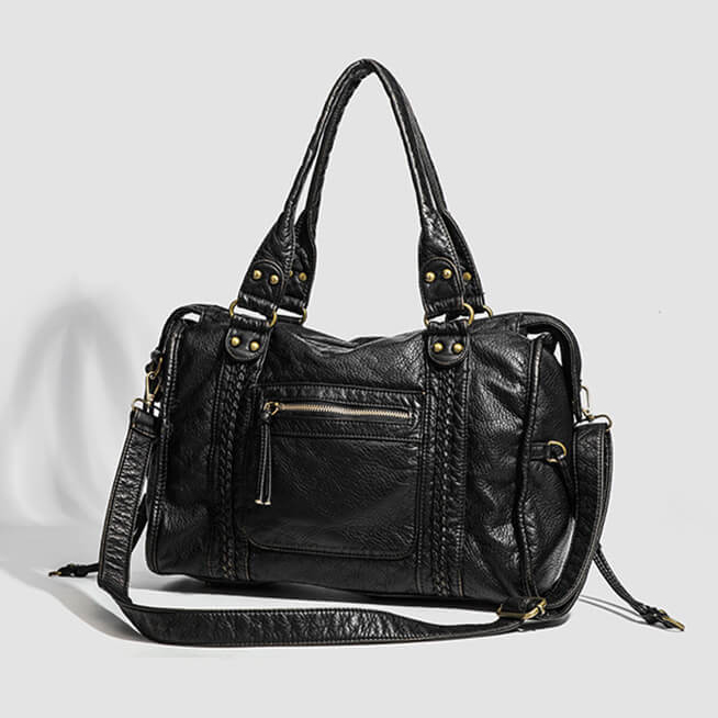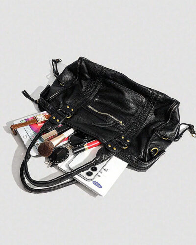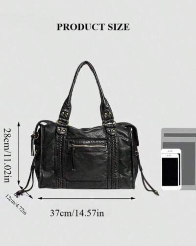 This large leather tote bag is a timeless blend of retro charm and modern functionality, designed for the woman who values both style and practicality.