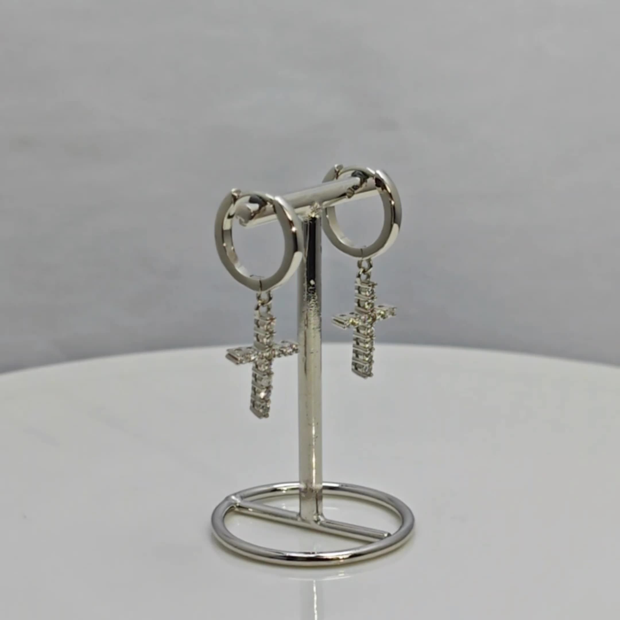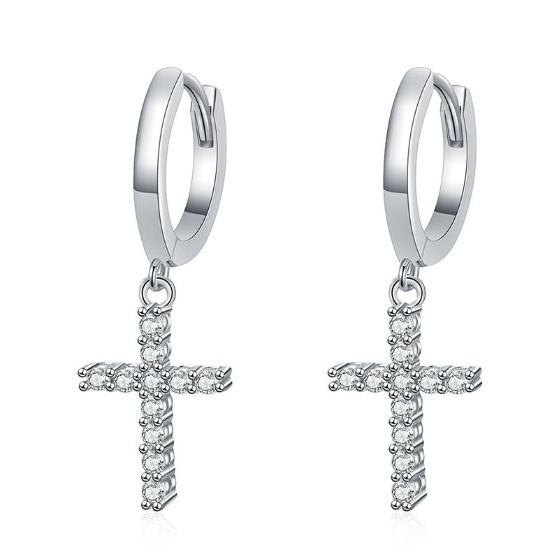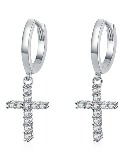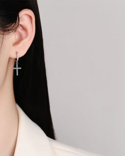 925 Sterling Silver Moissanite Cross Hoop Earring. Made of 925 sterling silver, it is sturdy and non-irritating, and can be worn for a long time without discomfort! The moissanite is inlaid on the cross pendant and paired with hoop earrings to show your personality.