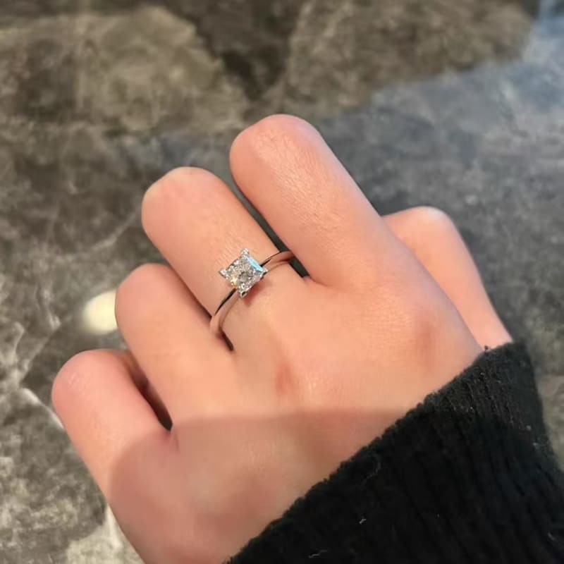 - PT950 Platinum Square Cut Lab Diamond Ring with IGI Certificate