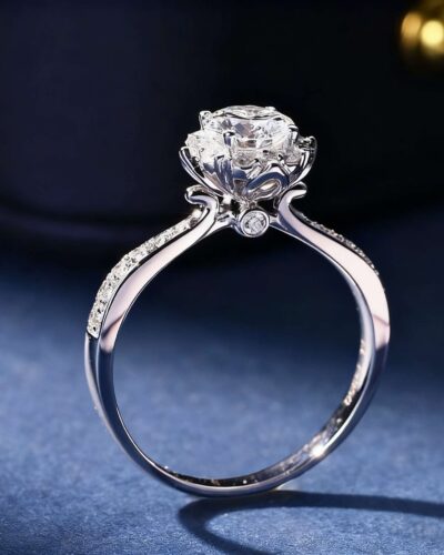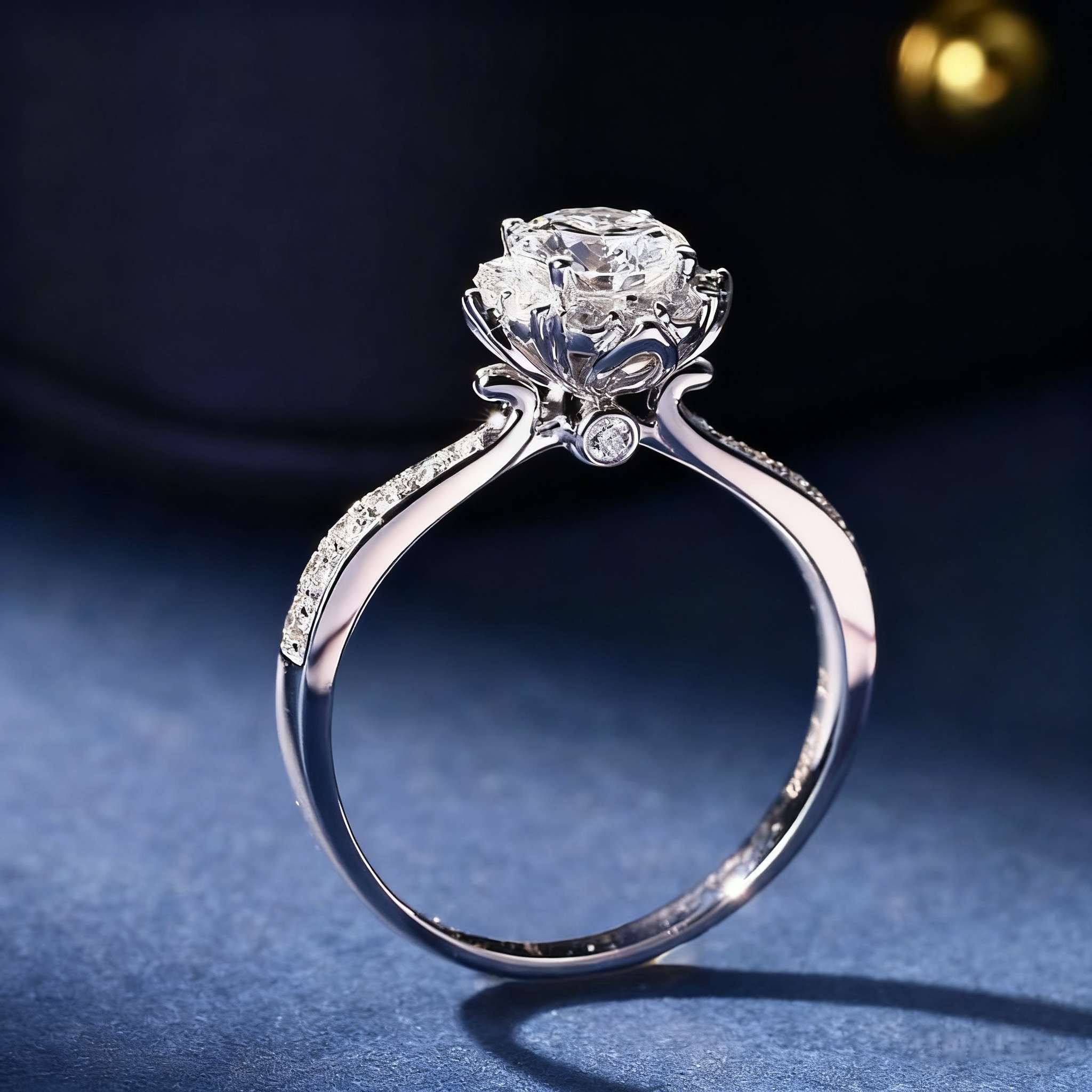 Bagues de fiançailles en diamants ronds fabriqués par l'homme