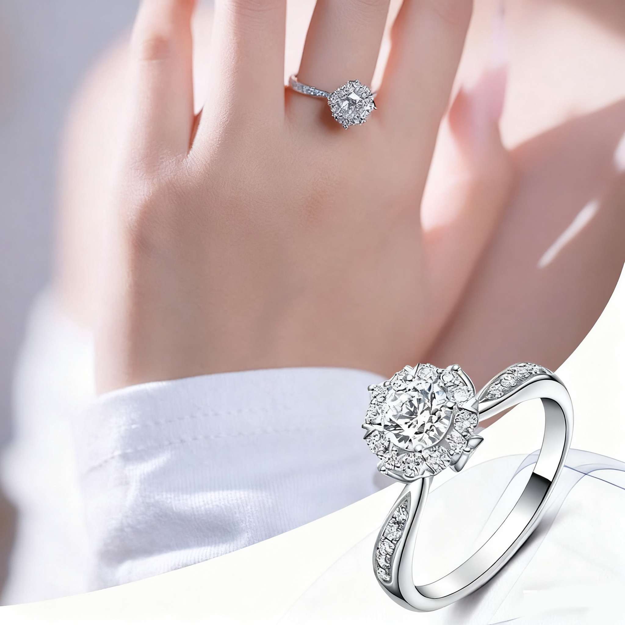 Bague de fiançailles en or blanc 18K avec diamant de laboratoire