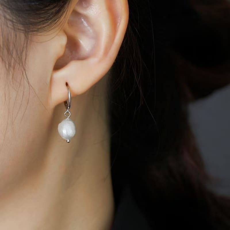 Boucles d'oreilles en perles baroques blanches 8MM Bijoux de tous les jours
