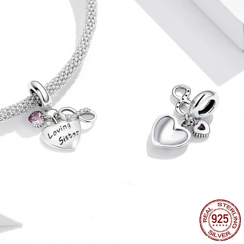 You can DIY an unique jewelry with this silver heart pendant engraved for your sister, like bracelet or necklace.