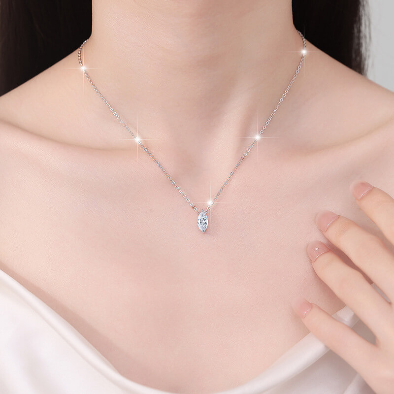 Simple D Color 925 Sterling Silver Marquise Moissanite Necklace
