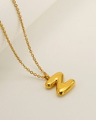 Collier minimaliste avec lettres A-Z en forme de bulles gonflées plaqué or