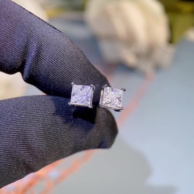 925 Sterling Silver Square Cut Moissanite Earring. Clean square cut, with selected high refractive index Moissanite. No minimum order quantity, you can enjoy the wholesale price for any order.