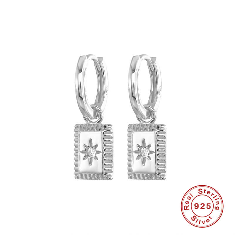 Créoles carrées en argent sterling Étoile géométrique