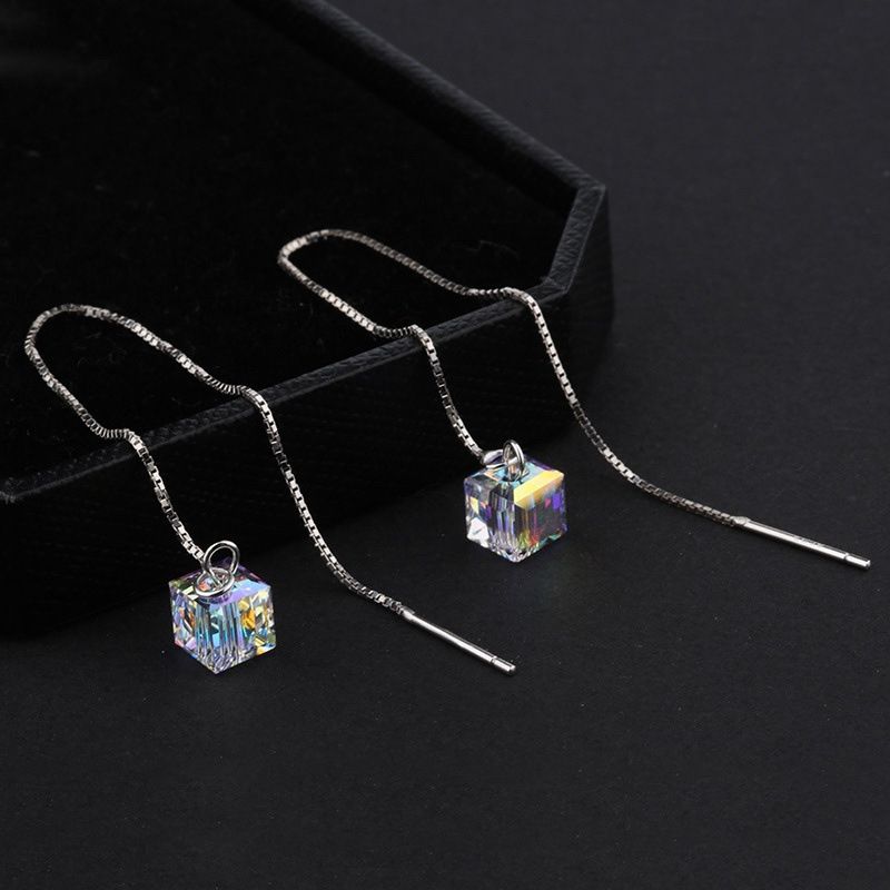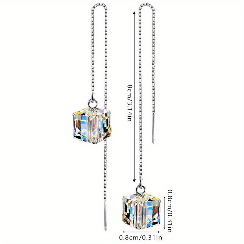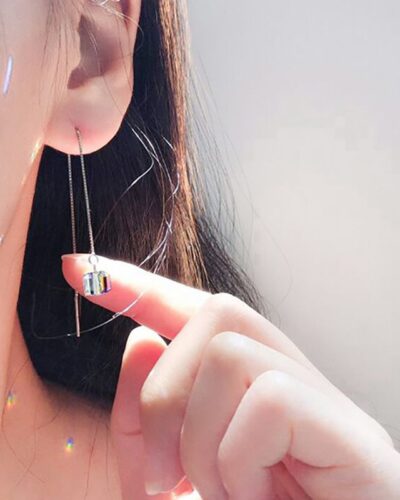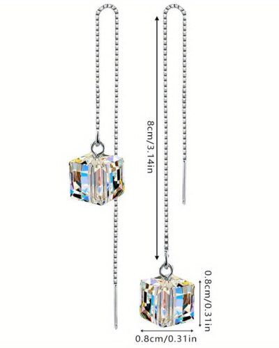 Square Pendant Earring with Tassel Design. These exquisite earrings feature a cube pendant and a tasseled silver chain. They’re sure to be the center of attention no matter the occasion.