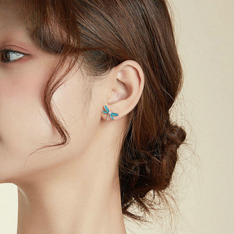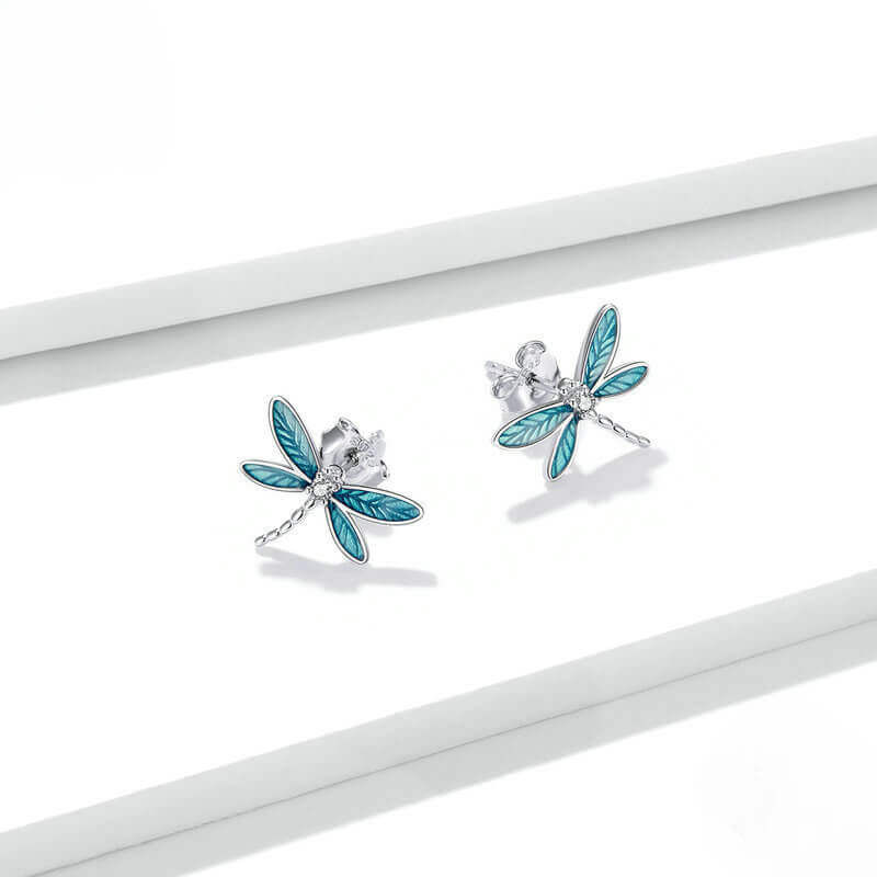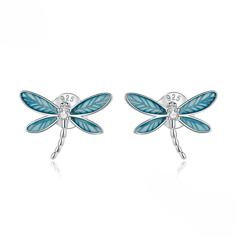 Niche Boucles d'oreilles libellule en argent sterling S925 Bleu