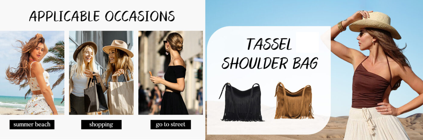 This crossbody tote bag is perfect for adding a touch of Bohemian style to festive outfits, casual denim wear, or even night outings. It strikes a balance between texture, dynamism and style, making it an excellent accessory for free-spirited fashion enthusiasts.