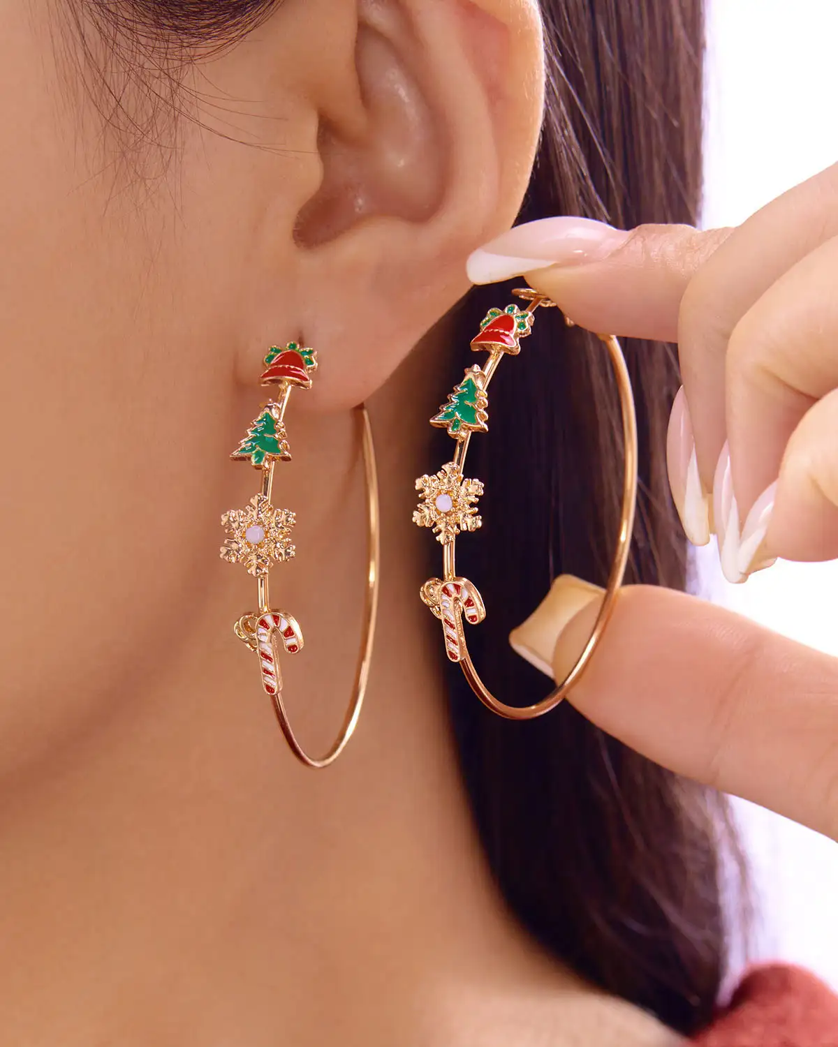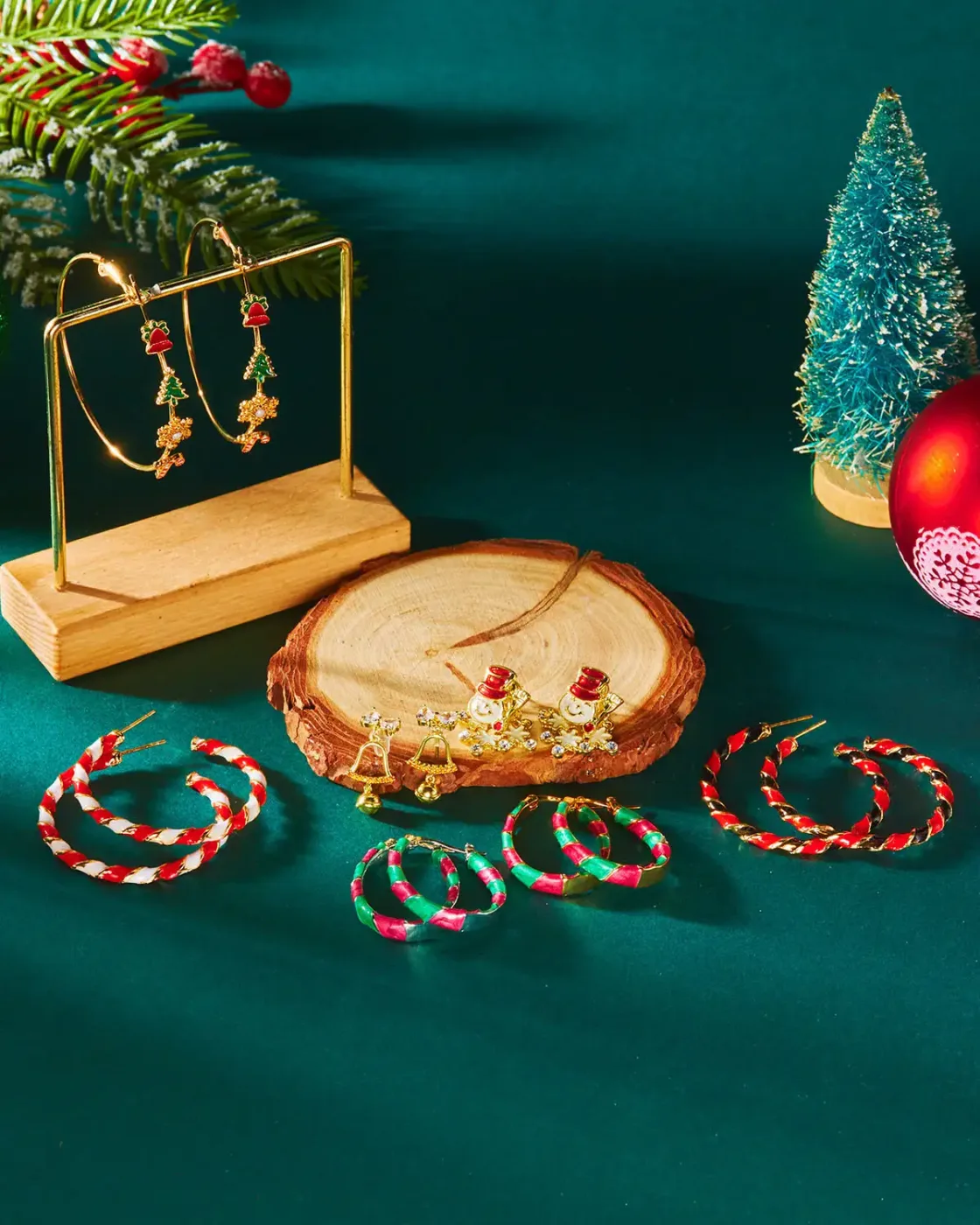 - This Ladies Christmas Earrings collection features multiple designs including Christmas trees, snowflakes, bells, and candy canes. Perfectly complements all your Christmas outfits—whether paired with sweaters or dresses, they add a sweet touch.