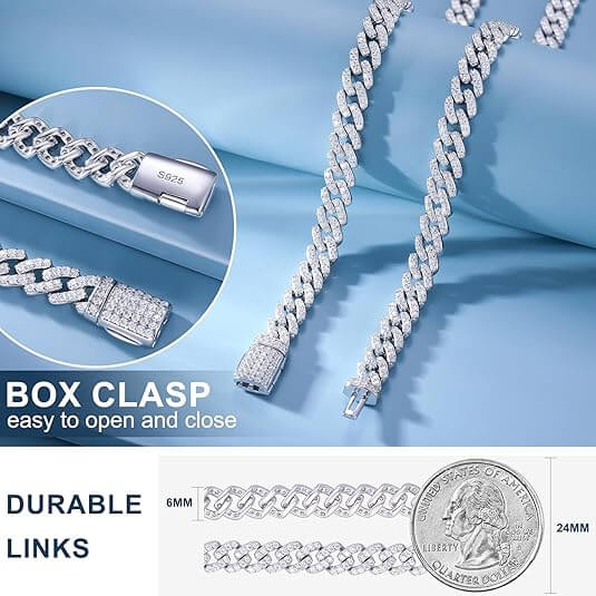 - As a high-end silver jewellery, this Moissanite Cuban Link chain is the perfect gift. Whether it is a birthday or Christmas gift, it can give your recipient a big surprise.