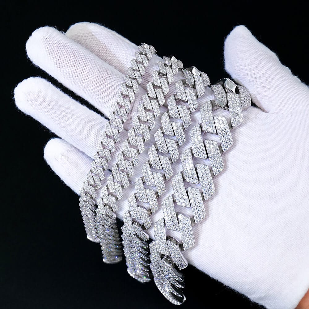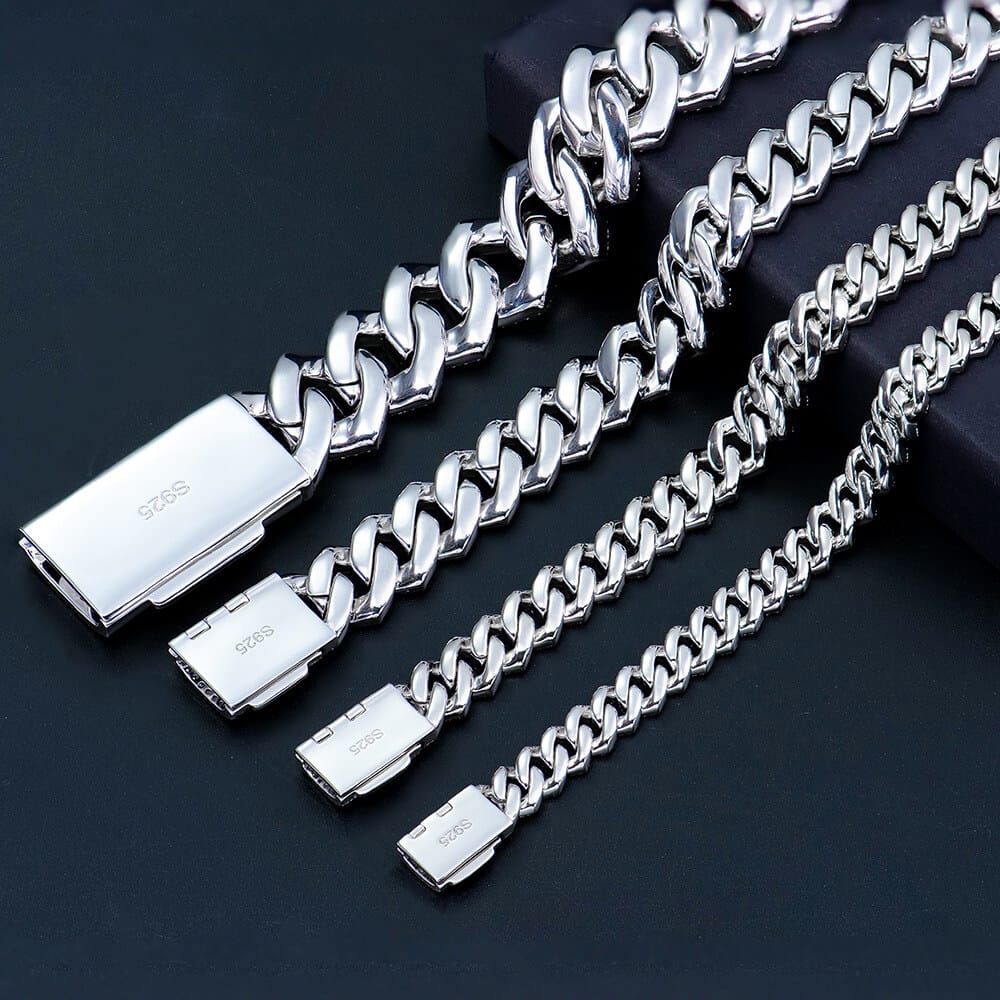 - Perfect Moissanite Cuban link chain necklaces and bracelets with 8mm-14mm width for different wrists and occasions.