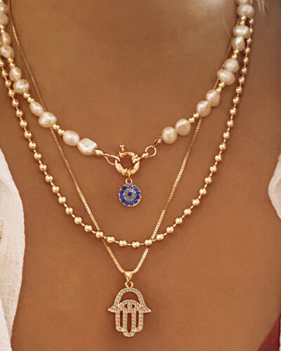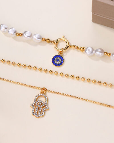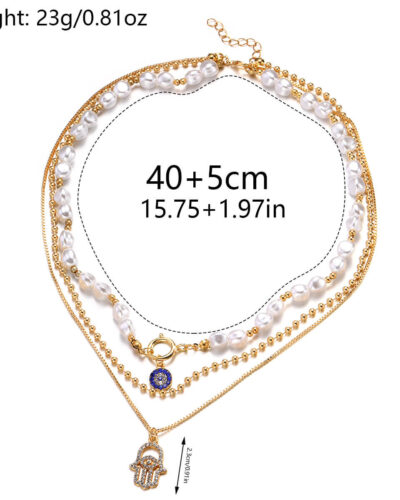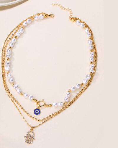 Item: Collana di perle a 3 strati con ciondolo a forma di palma per le donne