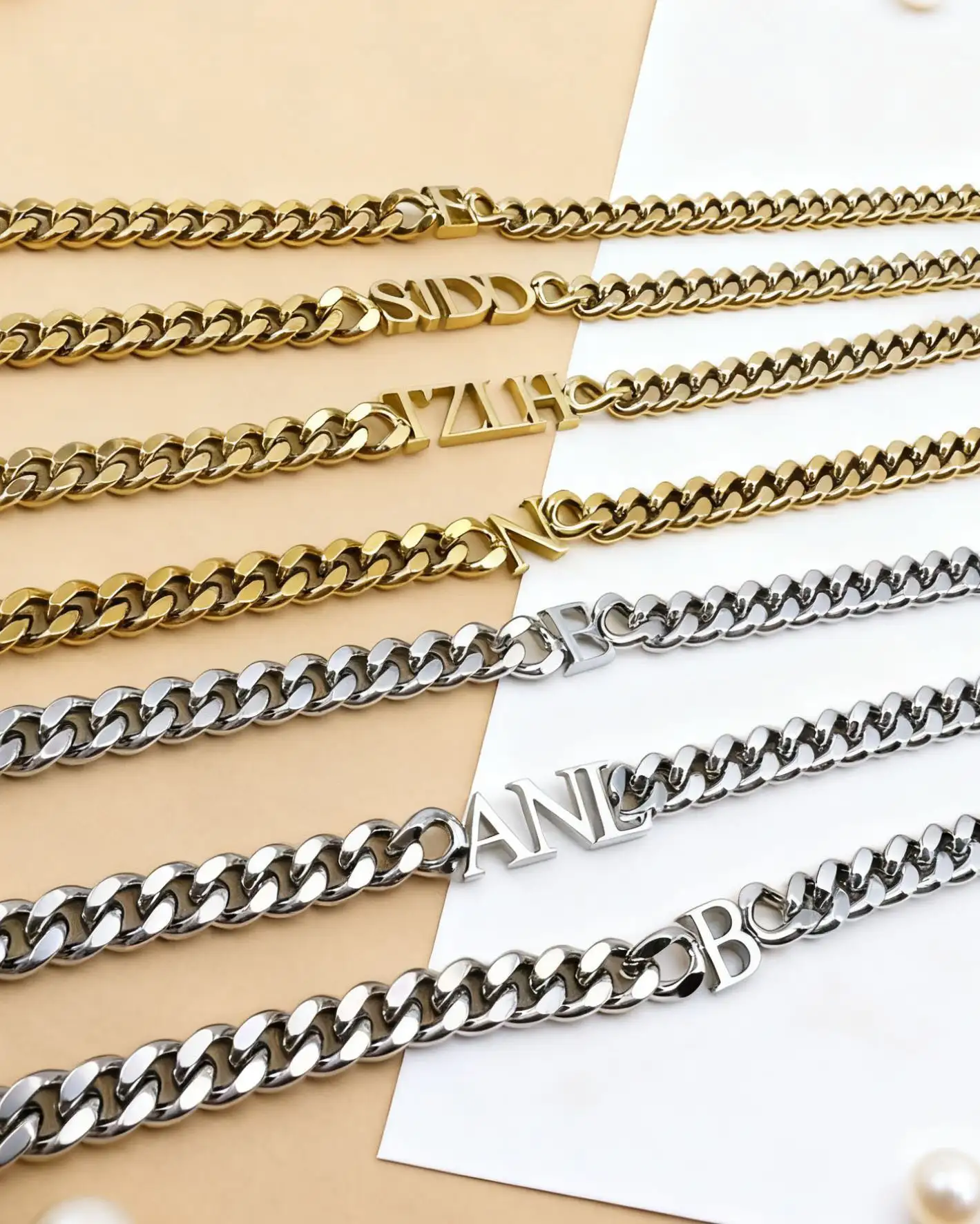 - The material of this cuban link name necklace is stainless steel! Bathing and swimming can be worn, the product will Never Fade! Reliable Quality!
