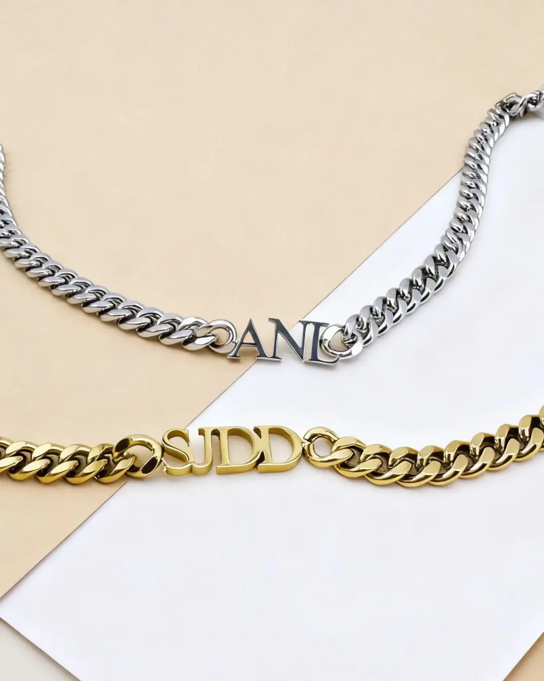 - This cuban link name necklace is crafted from premium stainless steel with an 18K gold-plated finish, offering scratch resistance and durability that won’t fade even with long-term wear. It makes the perfect gift for loved ones and friends, rich in sentimental value.