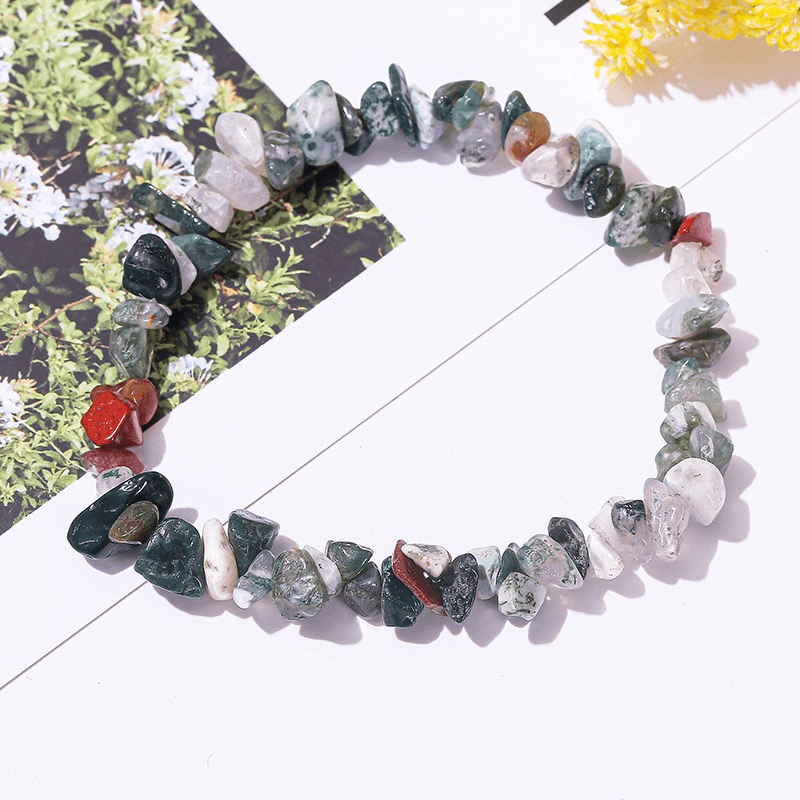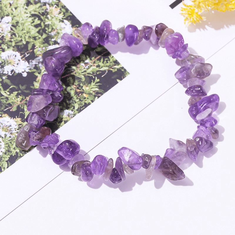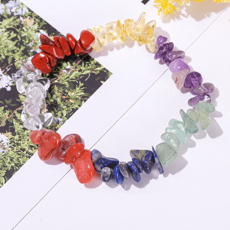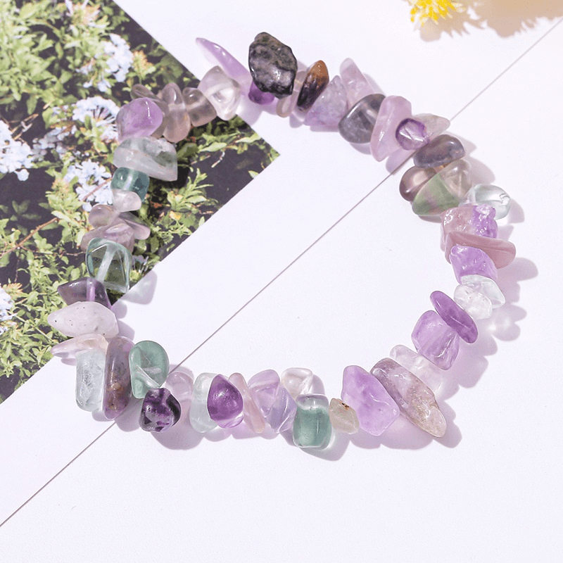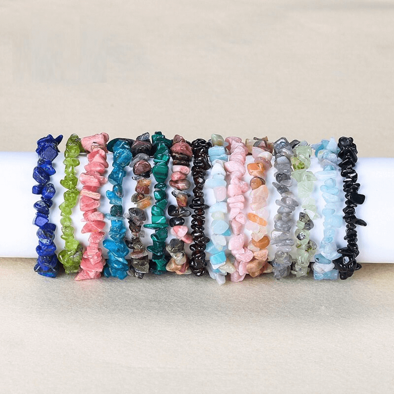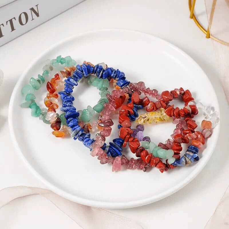 - These colorful crystal chip bracelets are made of natural crystals and raw gemstones, preserving their organic textures and energetic properties.
