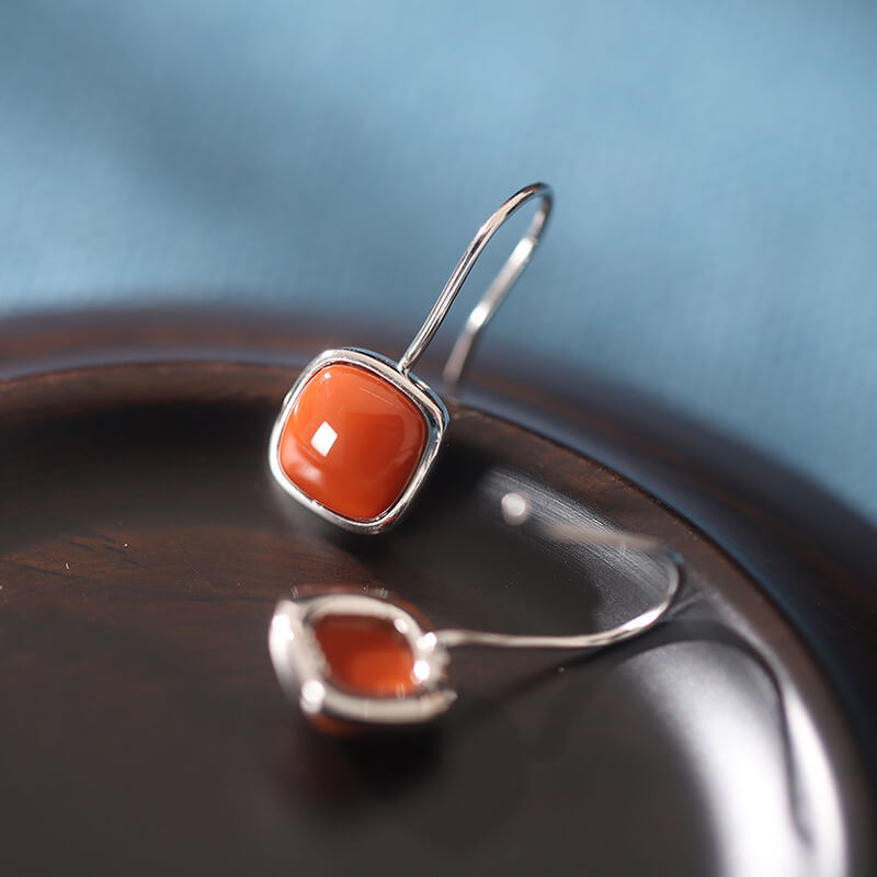 - Item: Simple 925 Sterling Silver Earring Hooks Red Agate