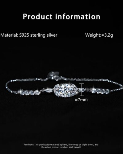 ✨S925 sterling silver adjustable Moissanite bracelet. The chain length is freely adjustable, so you don’t have to choose the size. Just pull it to fit wrists of different thicknesses.