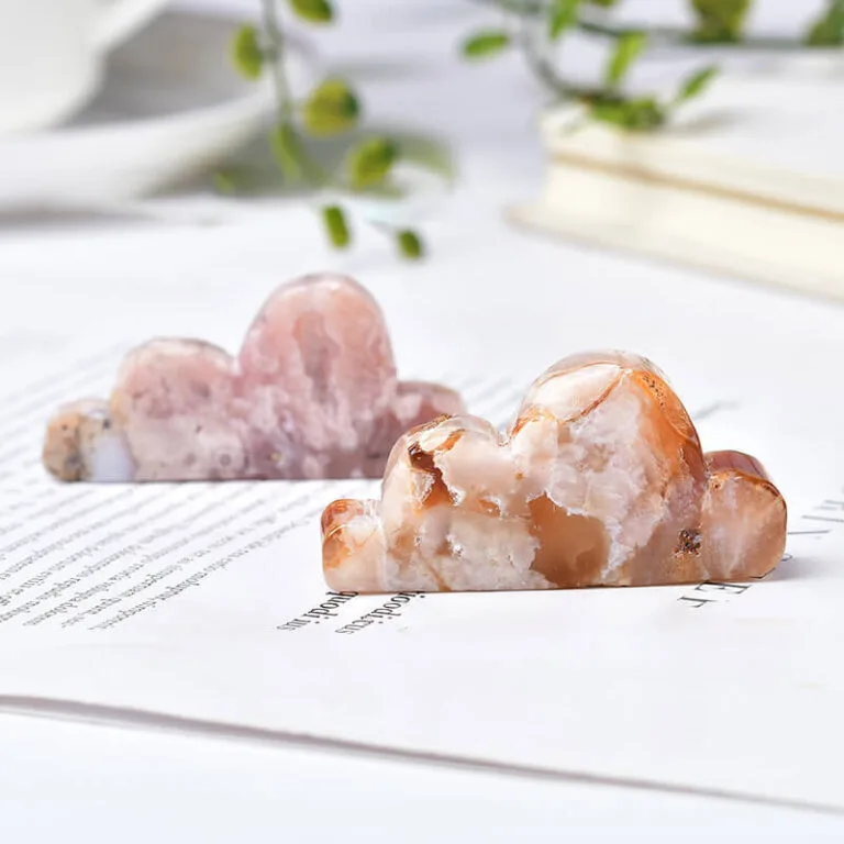 Healing Cloud Sakura Agate Stone Carvings Crystal