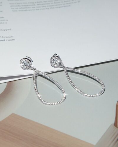 Orecchino a cerchio in argento 925 con goccia di moissanite