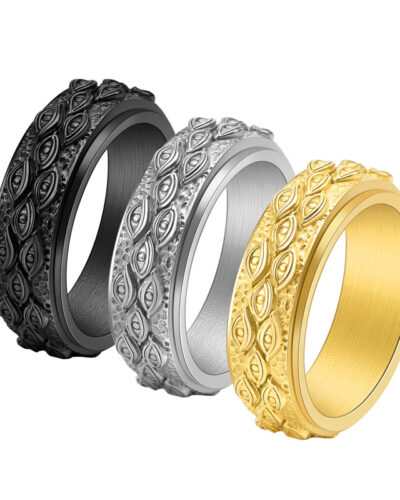 Rotating God’s Eye Stainless Steel Mens Ring. This groundbreaking rotating ring design allows you to express your personality at any time. The God’s Eye totem rotates freely with your finger movements, imbuing your fingertips with mysterious power.