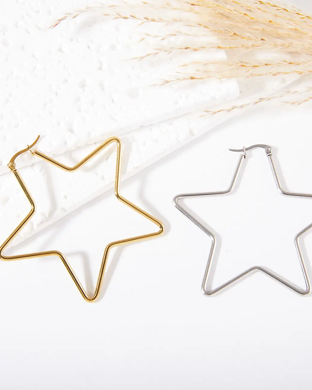 - These Stainless Steel Star Earrings feature a uniquely shaped wire design, exuding bold individuality. The striking five-pointed star makes a fashion statement, ensuring you stand out as the center of attention at any occasion.