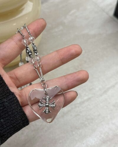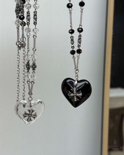 This black gothic cross necklace is crafted from stainless steel and glass, ensuring both durability and individuality. Both the black and transparent versions exude a Gothic style and a mysterious charm.