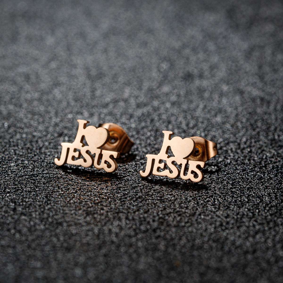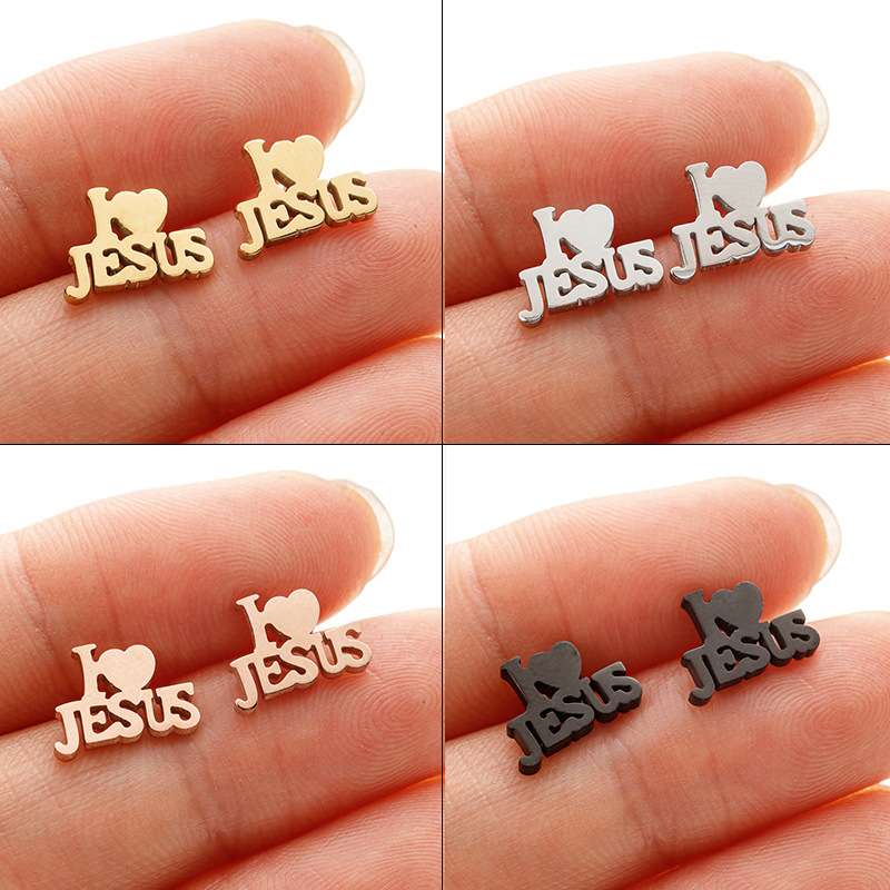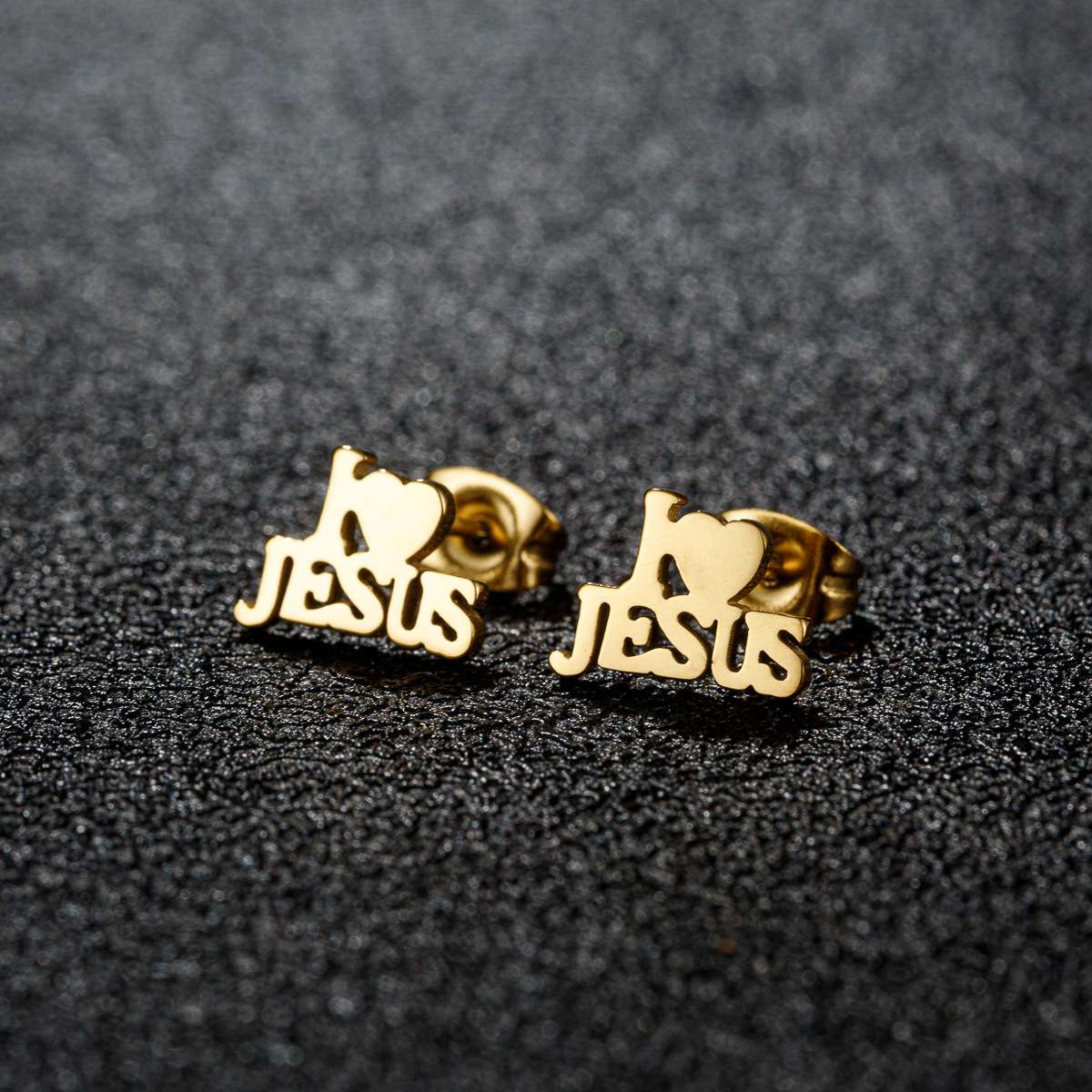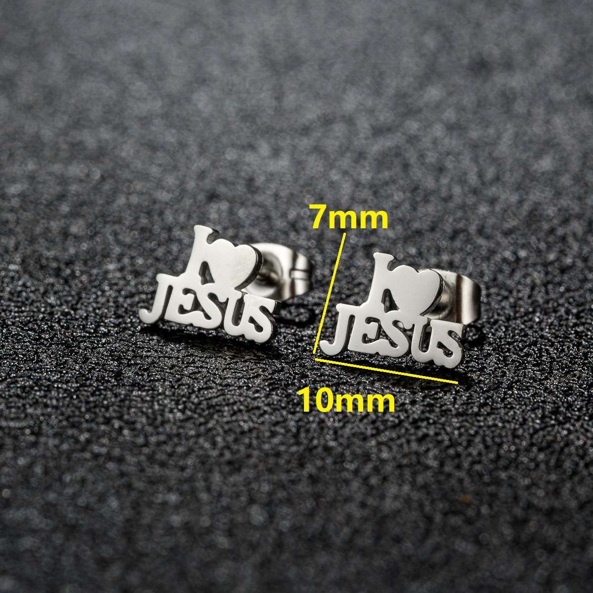 Orecchino in acciaio inossidabile a forma di cuore con Gesù scolpito