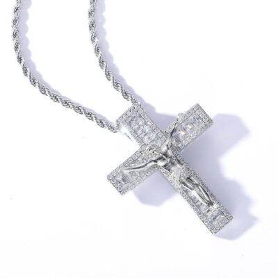Collana in argento 925 con ciondolo a forma di croce in moissanite