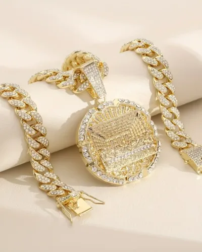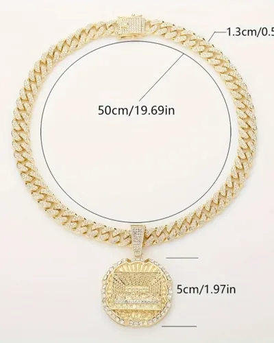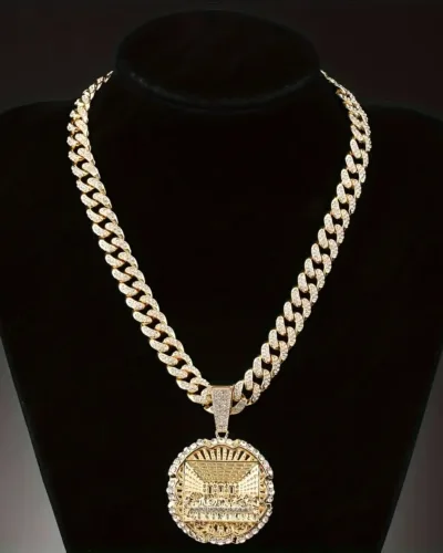 Collana da uomo con catena cubana e pendente con zirconi raffigurante l'Ultima Cena - Vendita all'ingrosso