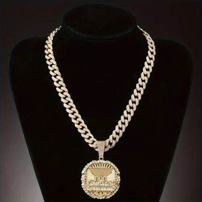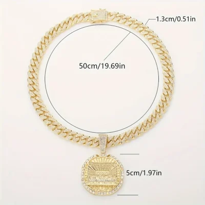 Collana da uomo con catena cubana e pendente con zirconi raffigurante l'Ultima Cena - Vendita all'ingrosso