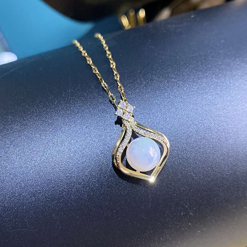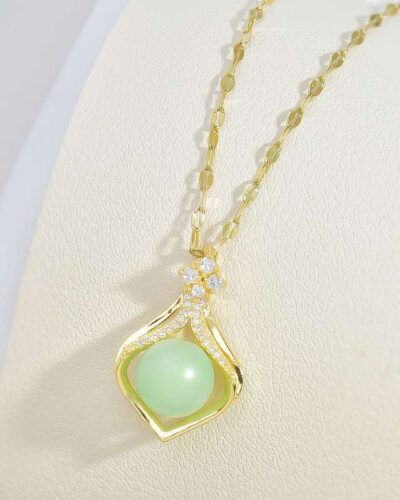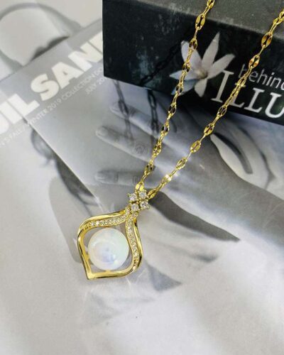 The exquisite pendant is inspired by the mermaid’s tail and water droplets, and is paired with a stainless steel lip chain. Combining fairy tales with modern jewelry, this necklace is full of romance.