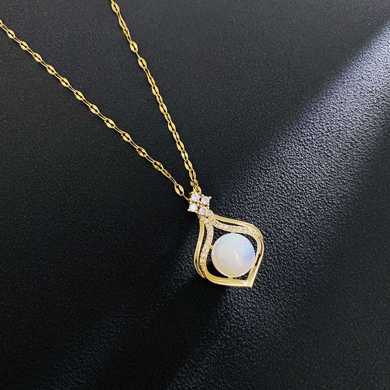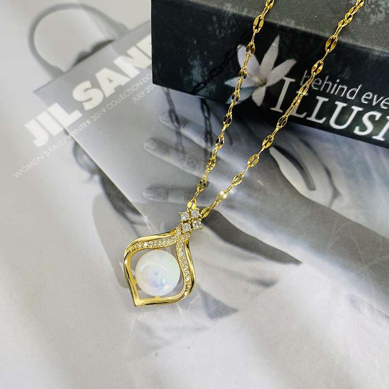 Collana in acciaio inossidabile placcato oro con zircone quadrato e taglio a perla
