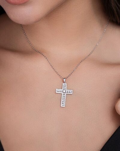 Collana in argento 925 con ciondolo a forma di croce in moissanite