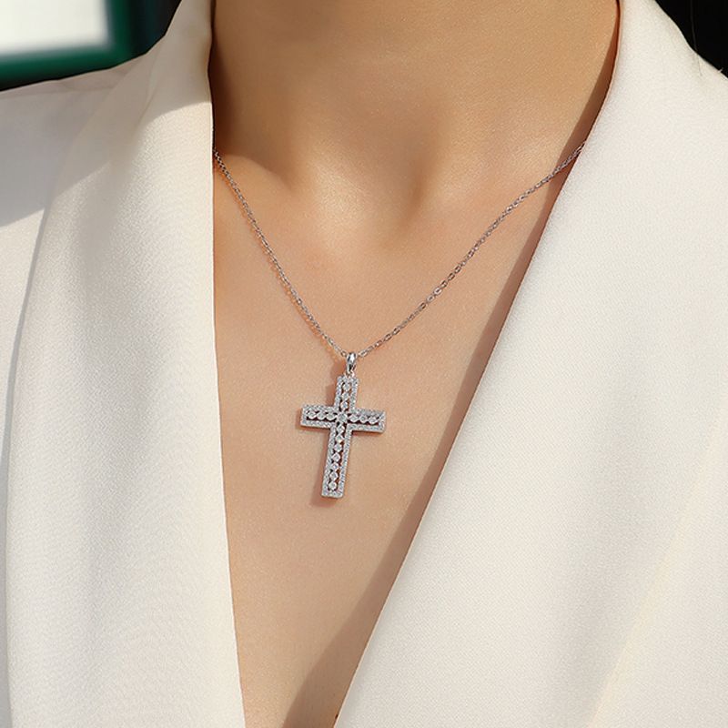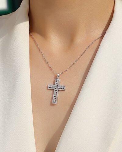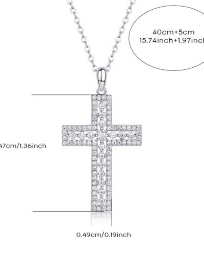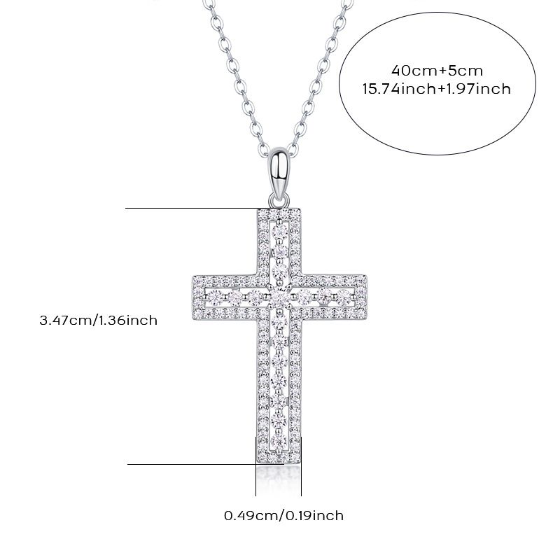 925 Sterling Silver Necklace with Moissanite Cross Pendant. The classic cross shape implies that faith is with you. The 925 sterling silver base is matched with multiple Moissanite stones, ensuring skin-friendly while making you the focus of attention.