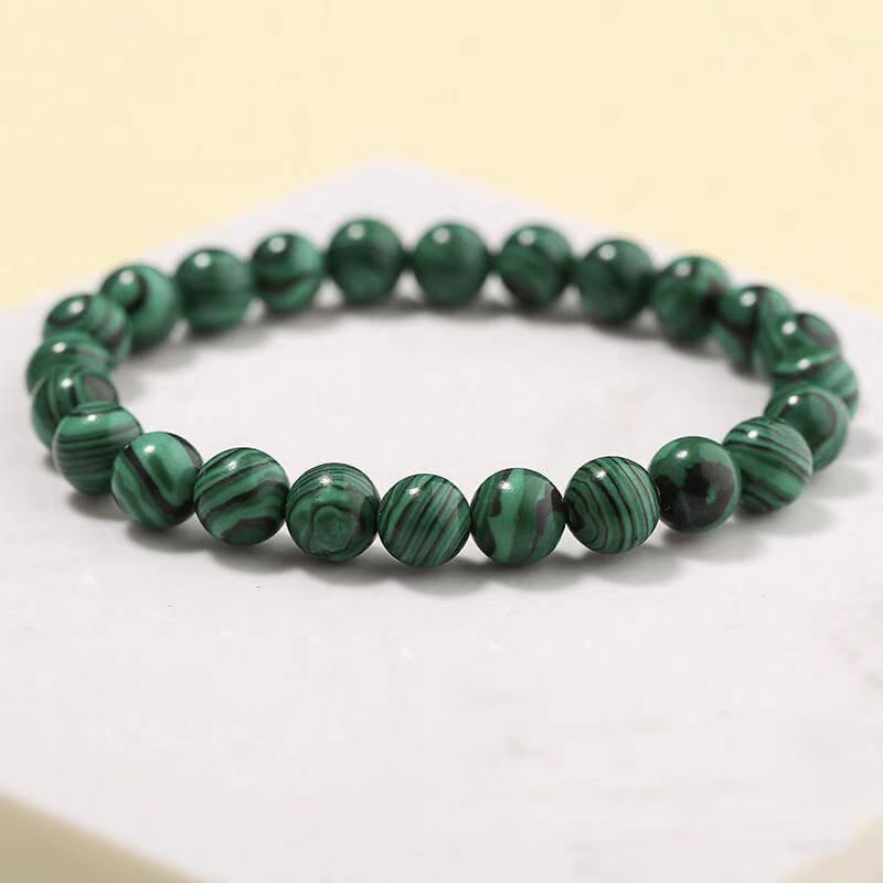 - Associato al polso, si dice che il braccialetto di malachite protegga il cuore, rafforzi l'intuizione e la creatività.