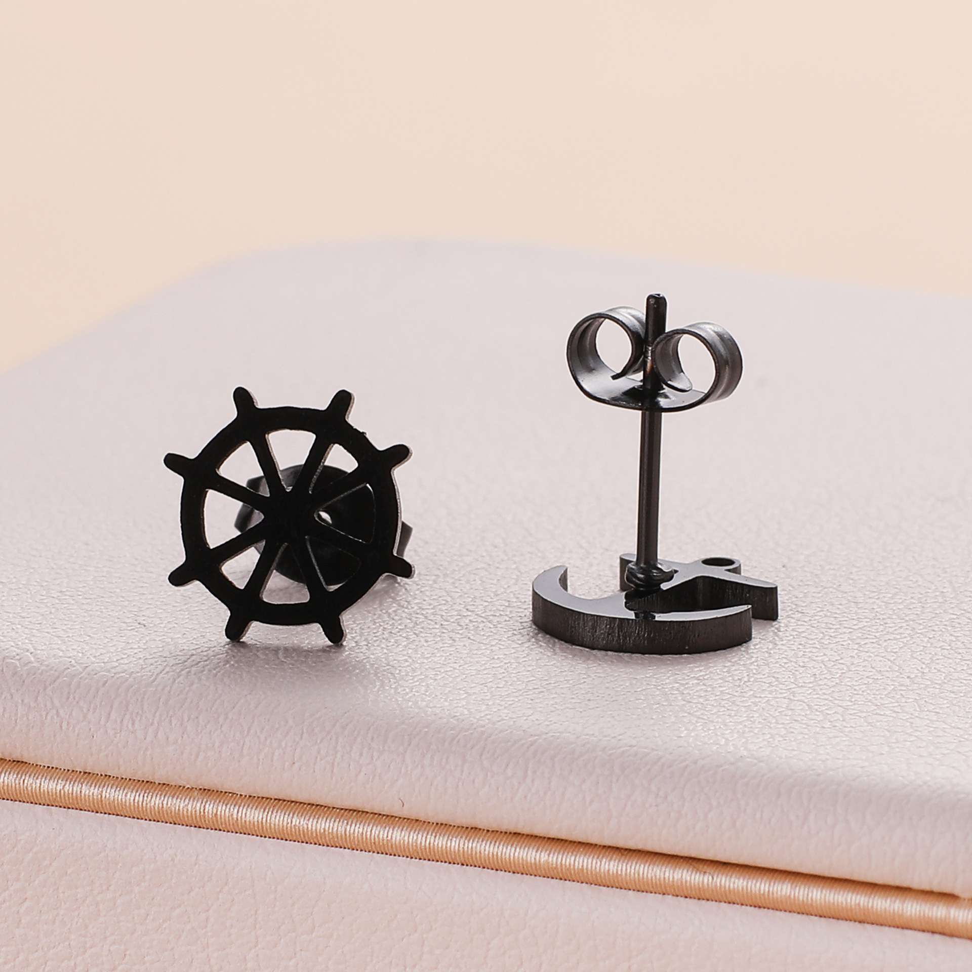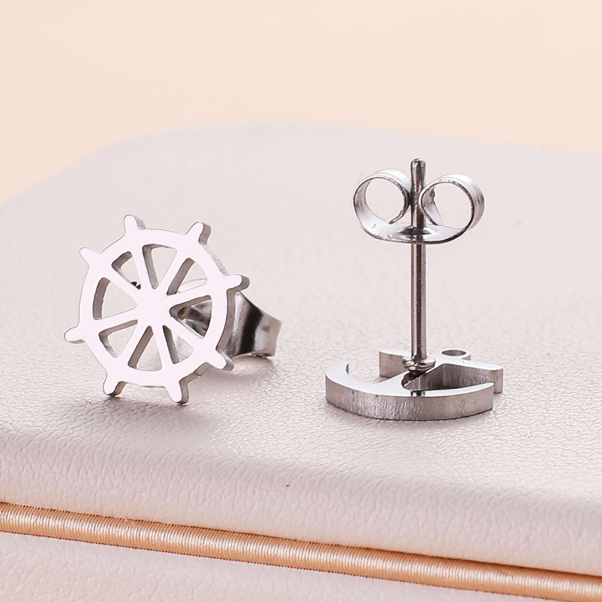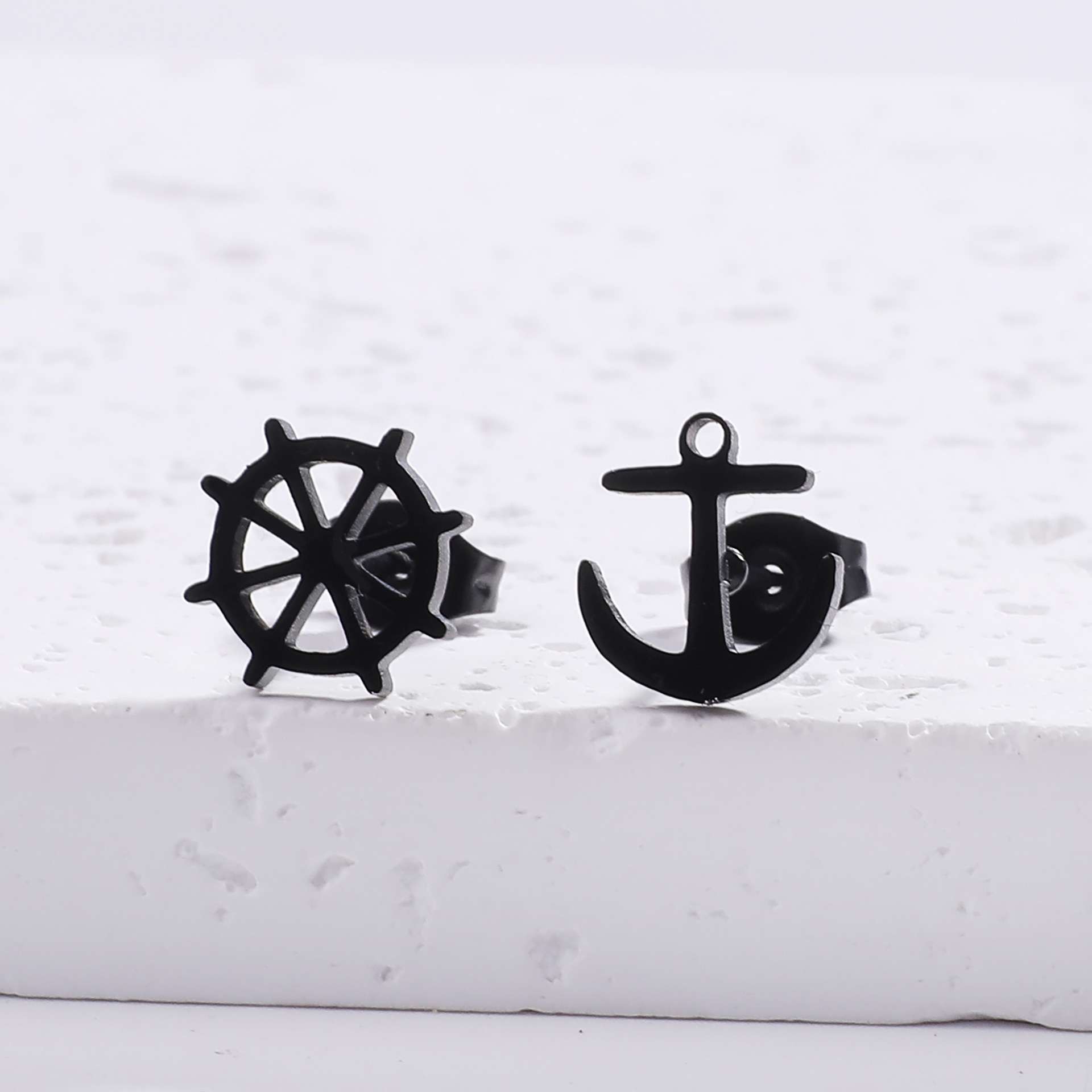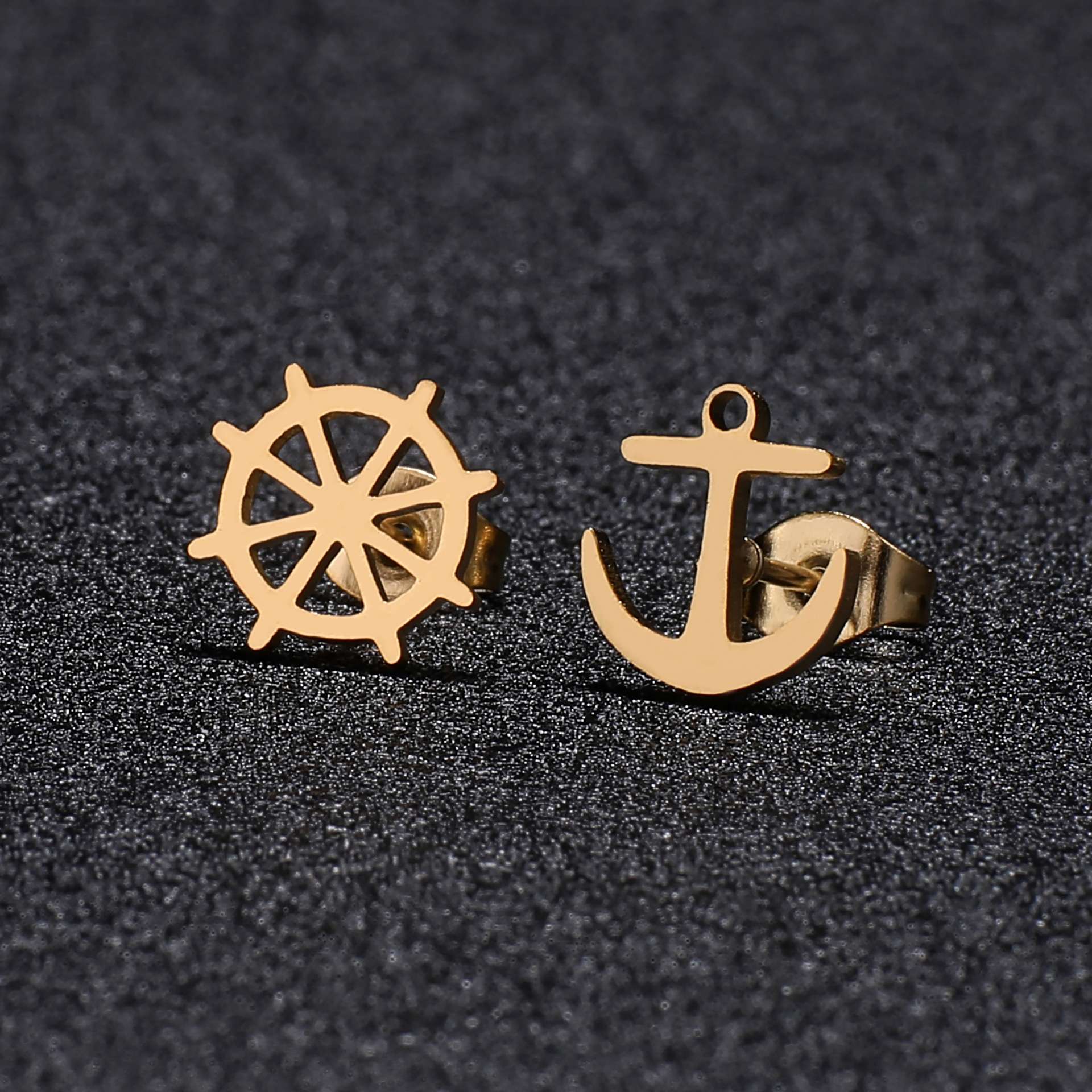 Orecchini in acciaio inossidabile con timone e ancora all'ingrosso