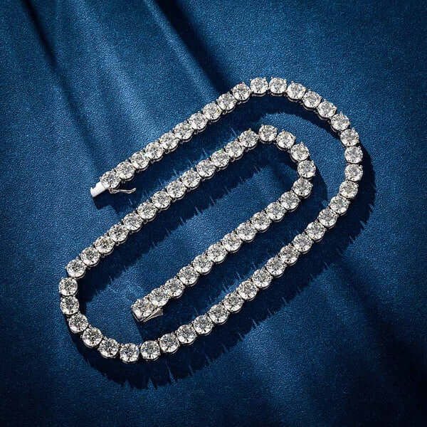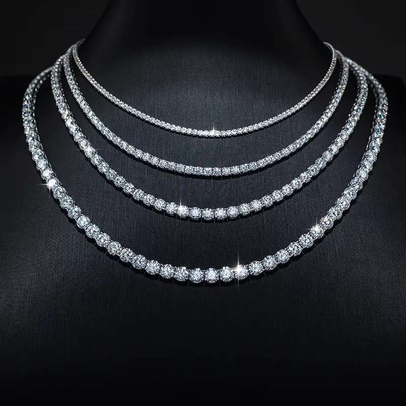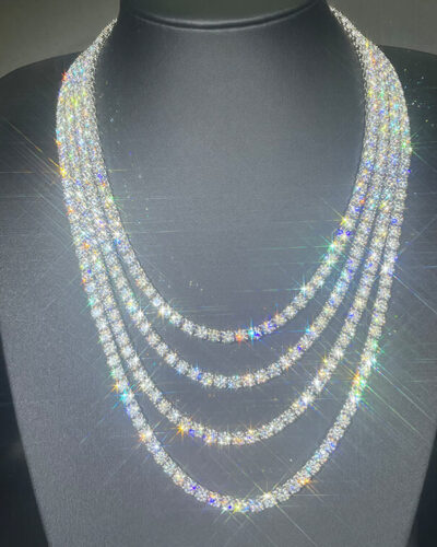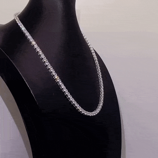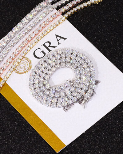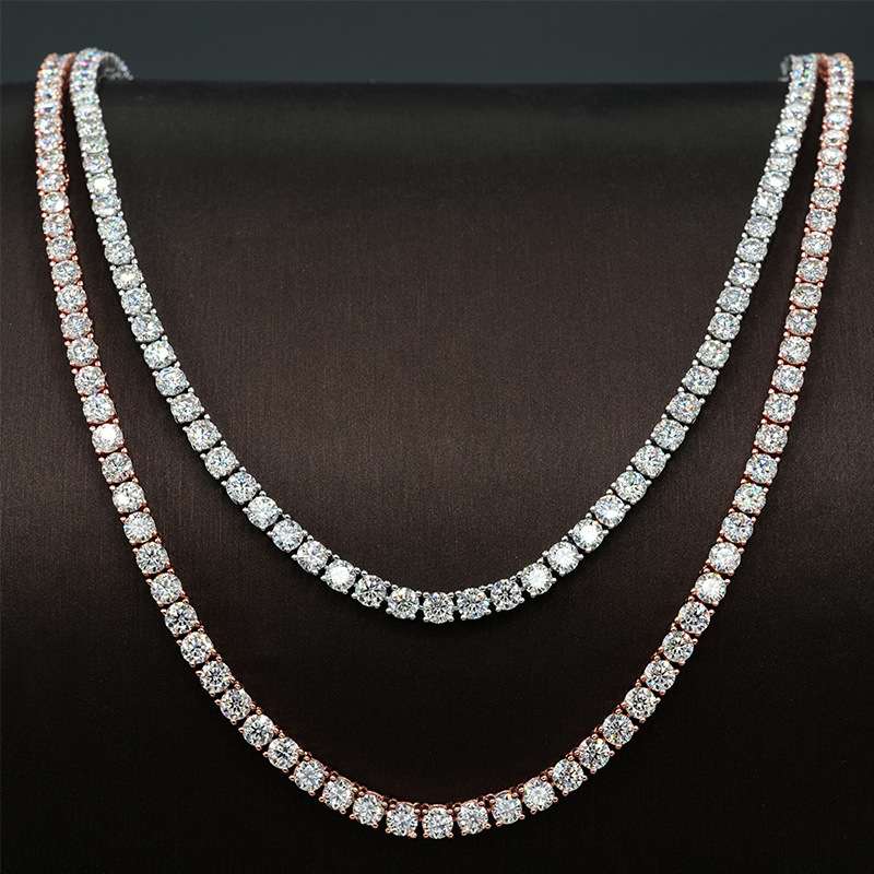This VVS moissanite tennis chain necklace is made with hand-selected moissanite stone, which is clean, sturdy, and shines like real diamonds.
