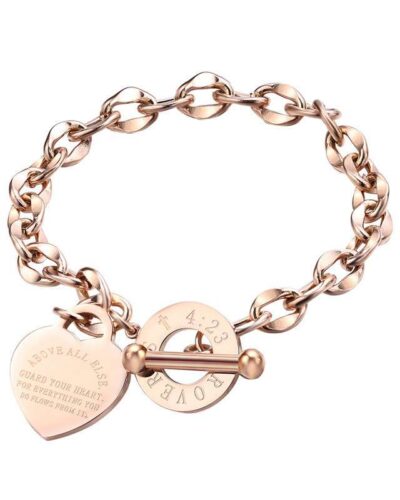 OT Buckle Scripture Bracciale a cuore in acciaio inossidabile