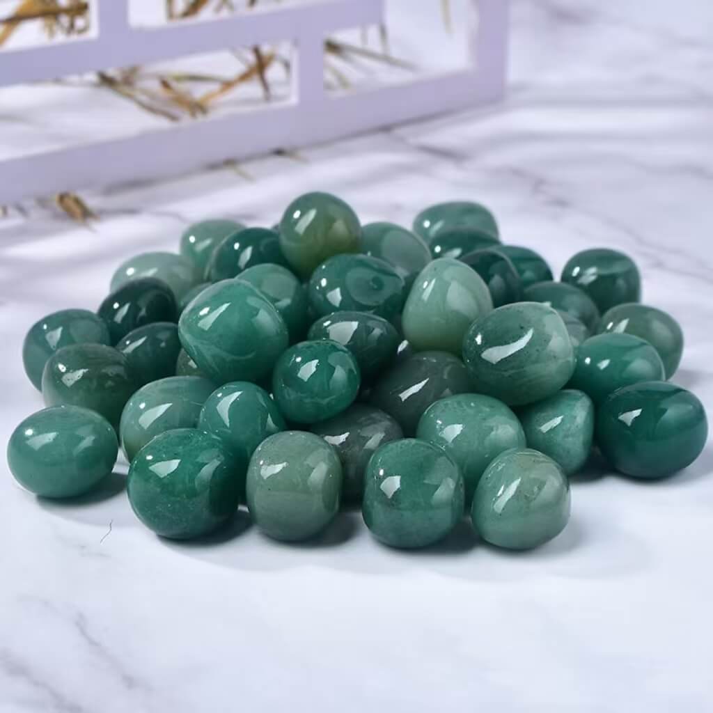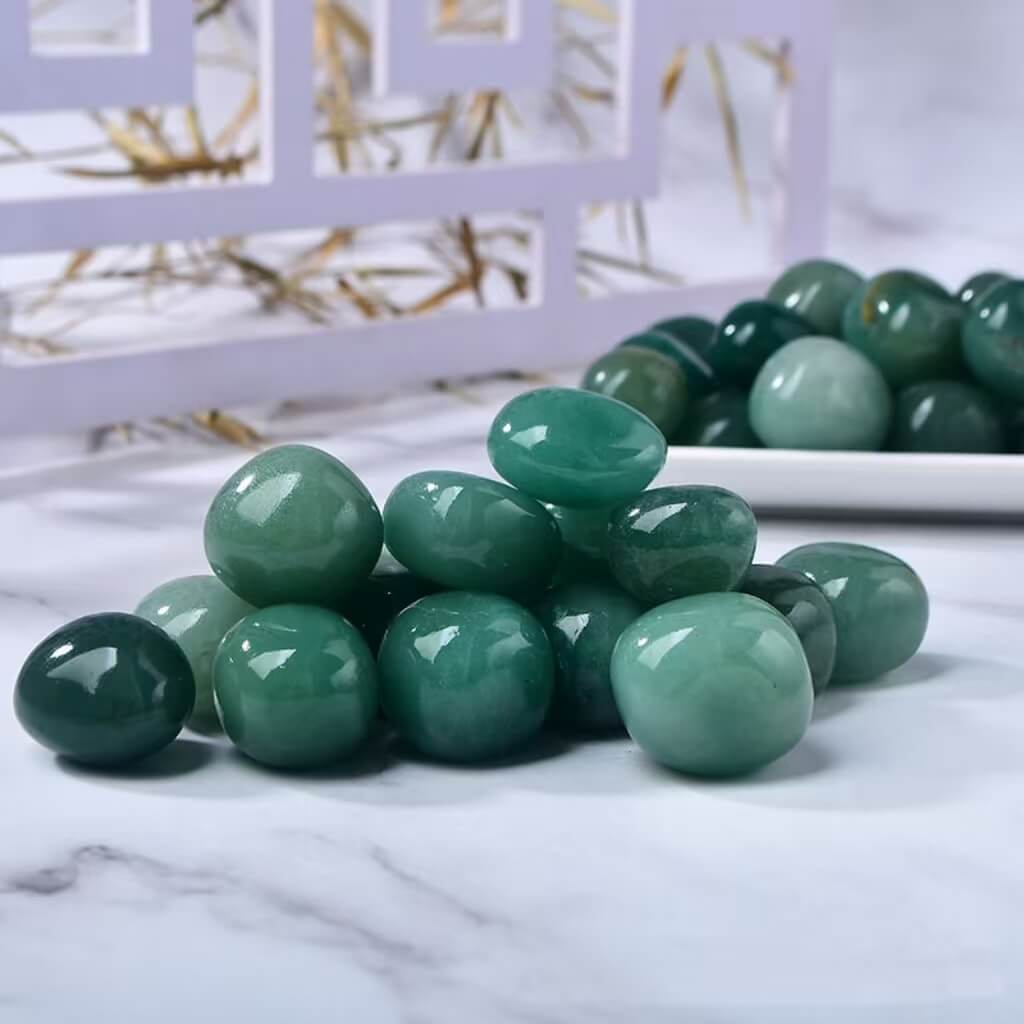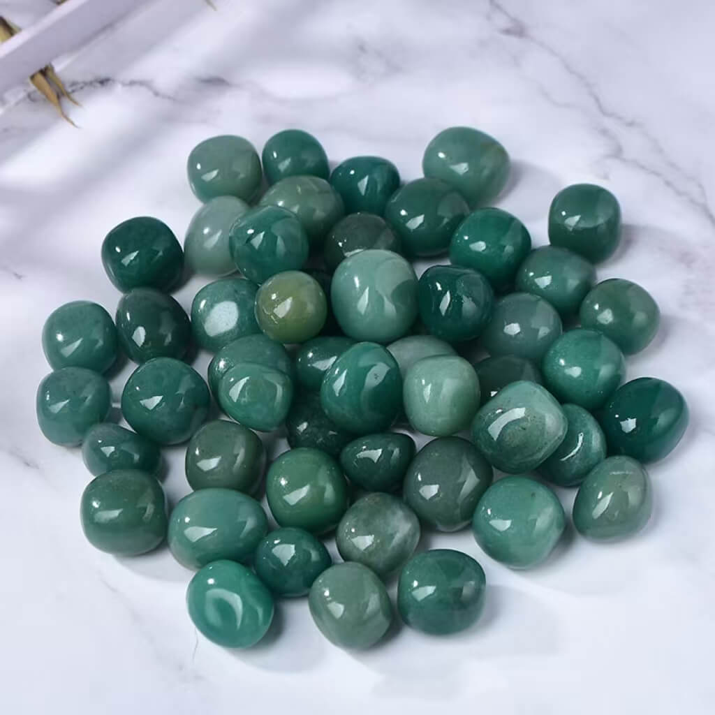 - The polished appearance and clear luster can show the beauty and elegance of green aventurine tumbled stones.