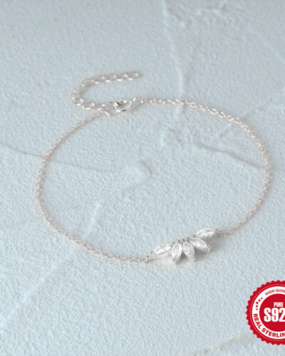 Sterling cilver crown bracelet features a crown of 3 marquise shaped grade 5a cubic zircons as the main design.