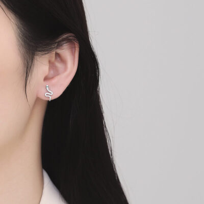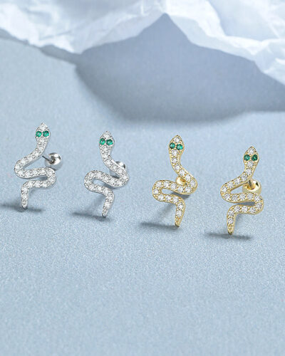 The eyes and body of the 925 sterling silver snake stud earrings are each set with a different color of high-quality zirconia to create a sparkling effect.
