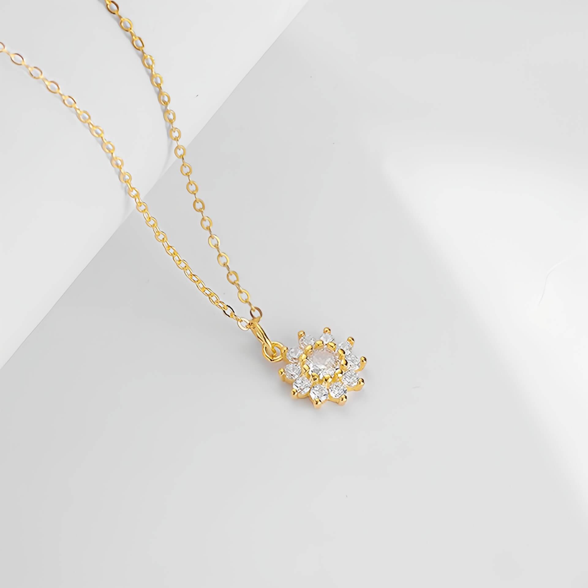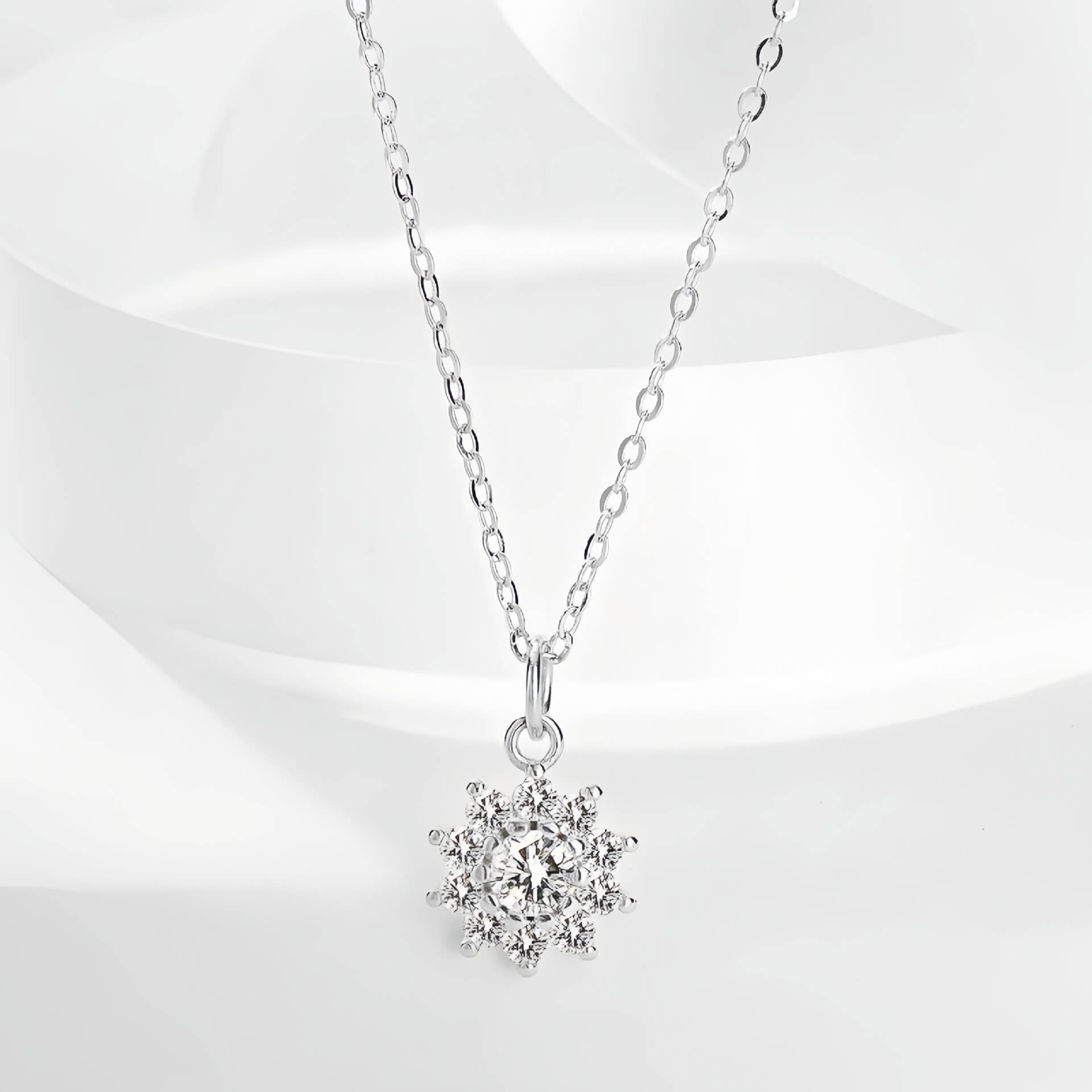 Collana in argento 925 con ciondolo a fiore intarsiato in moissanite