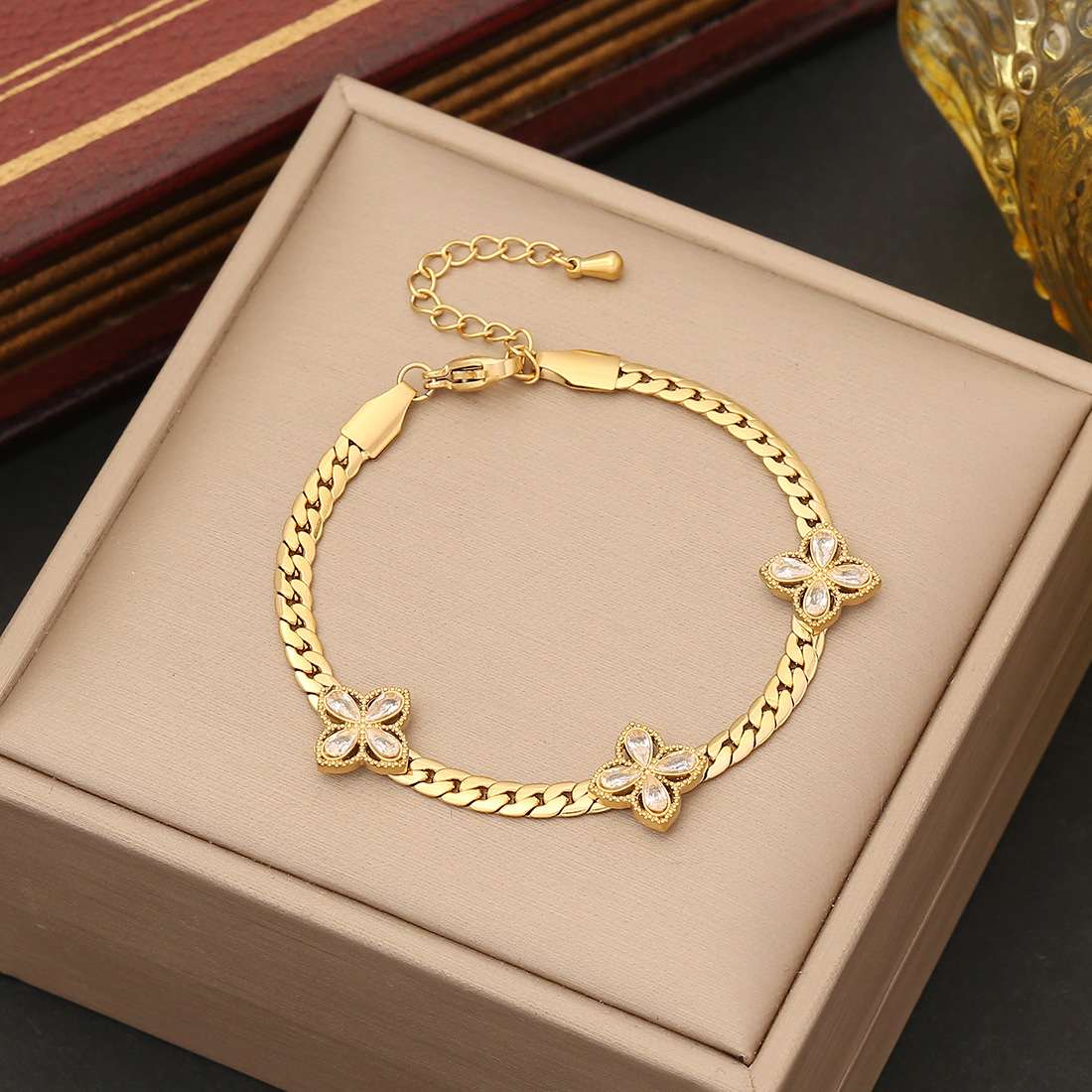 This stainless steel flower necklace features zircons set on a stainless steel base and paired with a sleek snake chain, creating a refined and elegant look. The stainless steel material is gentle on the skin, ensuring it won’t cause allergies even with long-term wear.