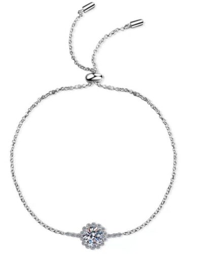 Bracciale in argento sterling con moissanite a forma di tondo da 2 carati