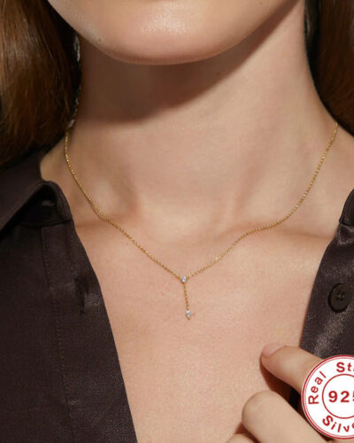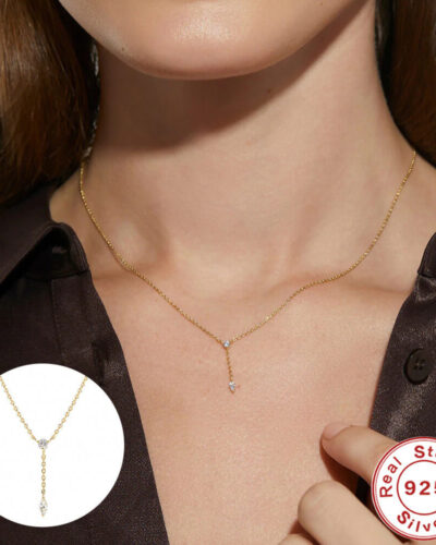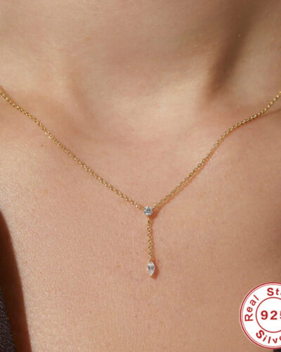 スターリングシルバー925 5AジルコンYドロップネックレス