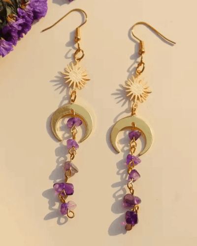 アメジスト・クリスタル・チップ・ピアス 太陽と月 Bulk