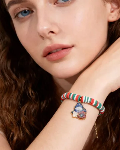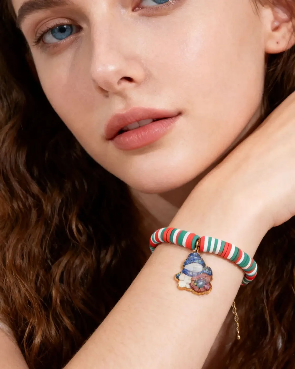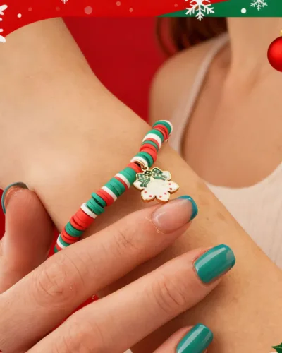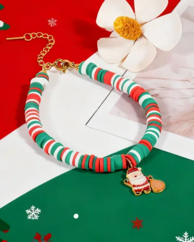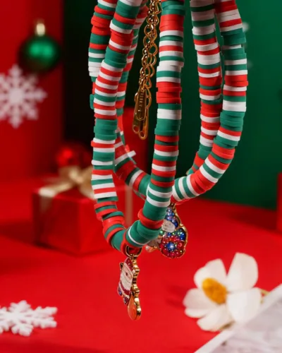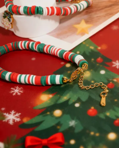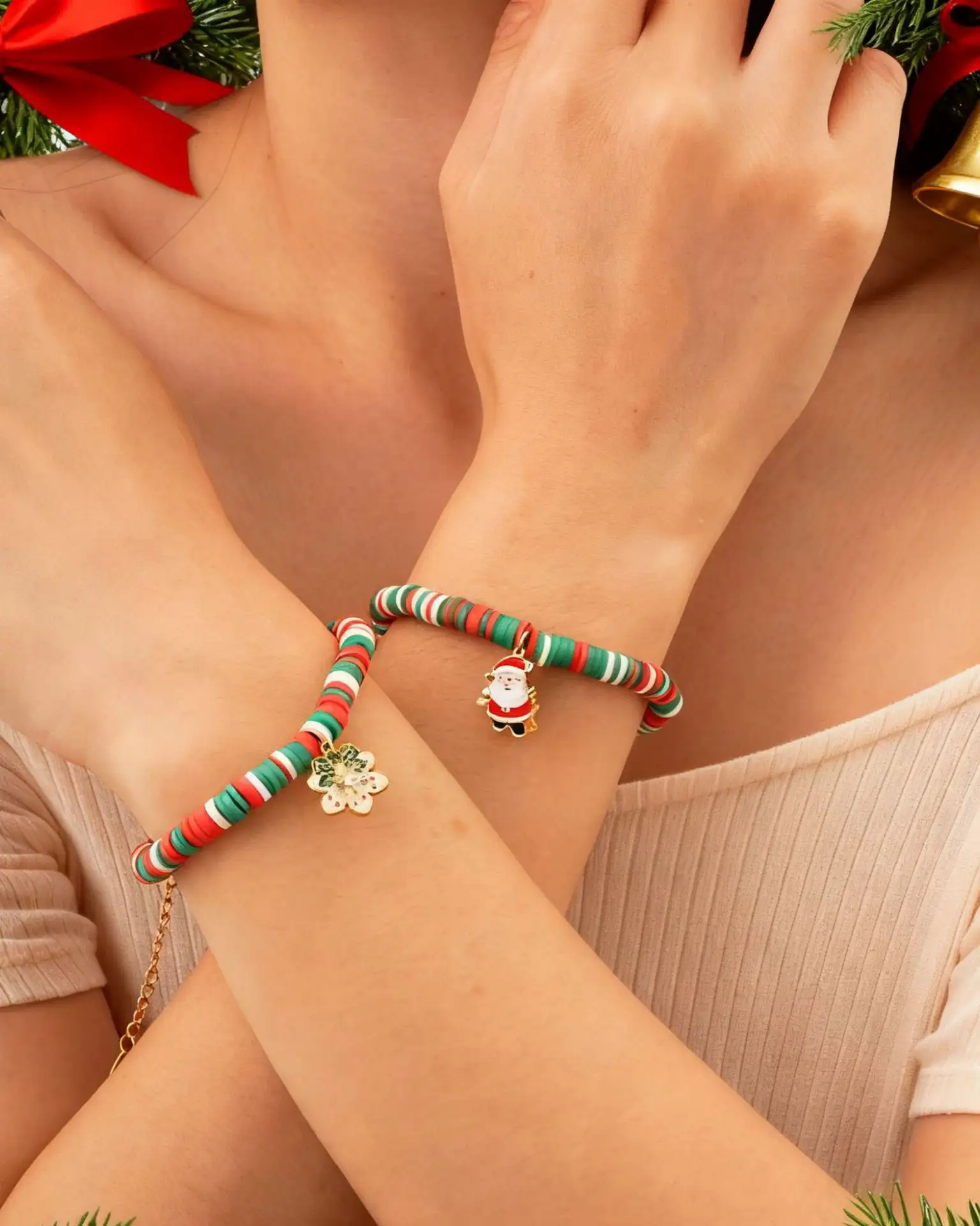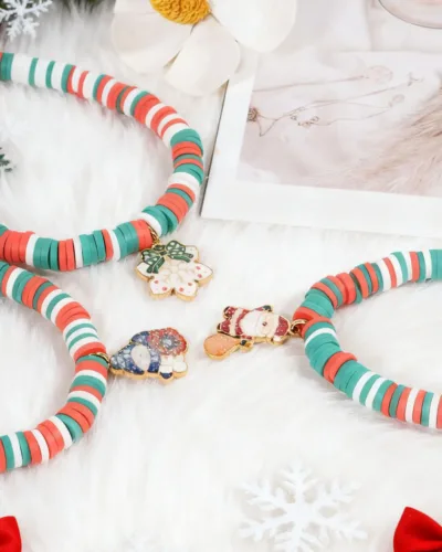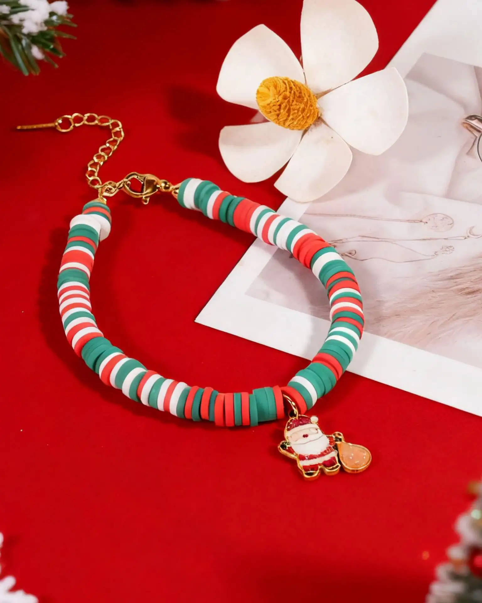 かわいいステンレスペンダント付きクリスマス粘土ビーズブレスレット
