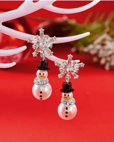 スノーマンデザインのファッション・クリスマス・イヤリング